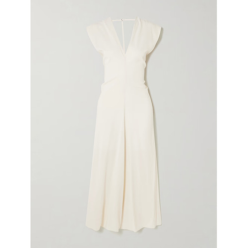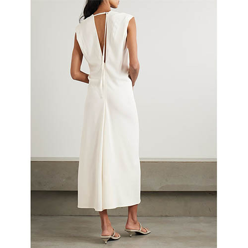 Hot Tags: Vestido midi em V profundo sem mangas marfim