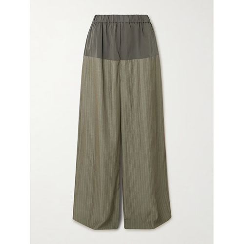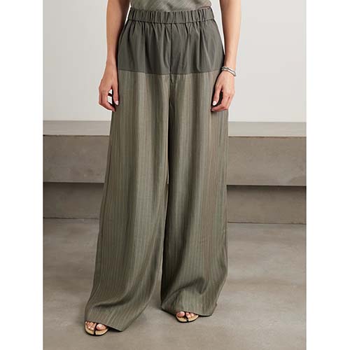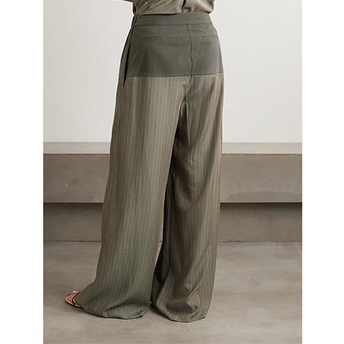Conjunto de cami listrado verde-oliva e calças largas sob medida